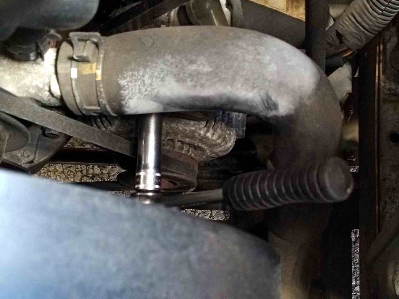 んなこたあどーでもエエんですが、普通にアジャスト側/M8頭12mm緩めてバールでベルト切れるほどw張ってまたアジャスト締めりゃカップラメーン出来上がる前に終了、5分もカカンネ、でつ。