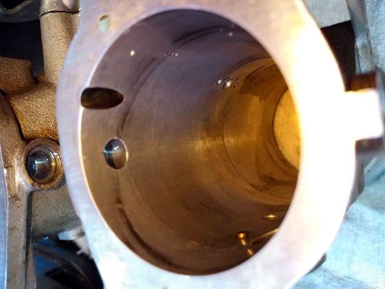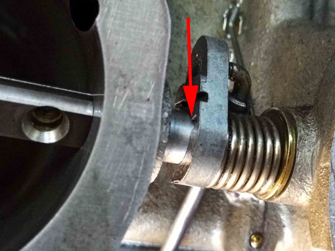 スロットルシャフトは溝の内側、ビスで締めた痕がバタフライ側に出っ張ってるんで