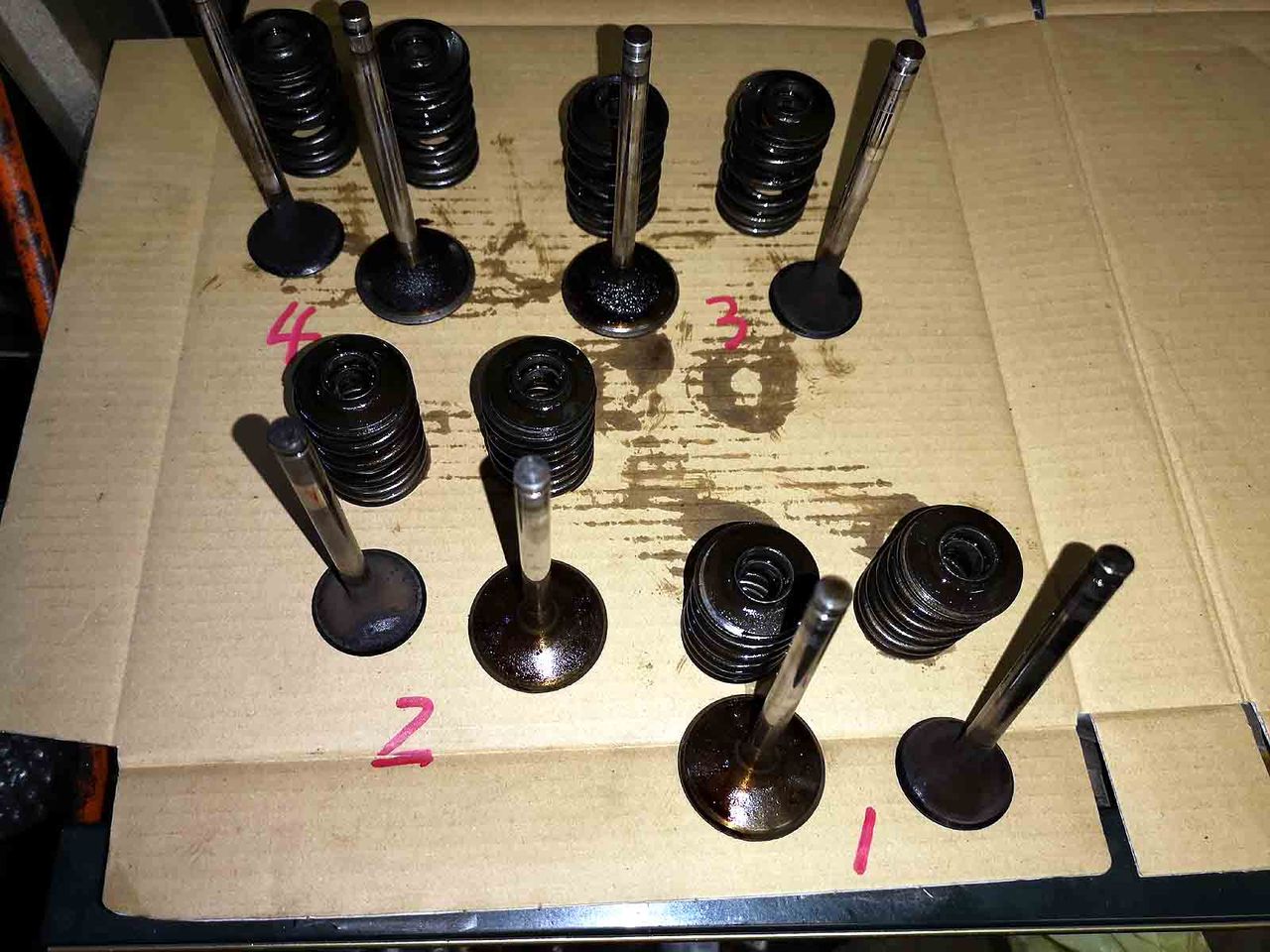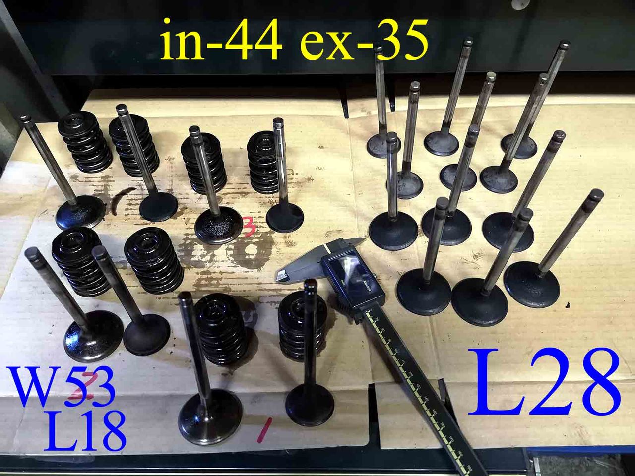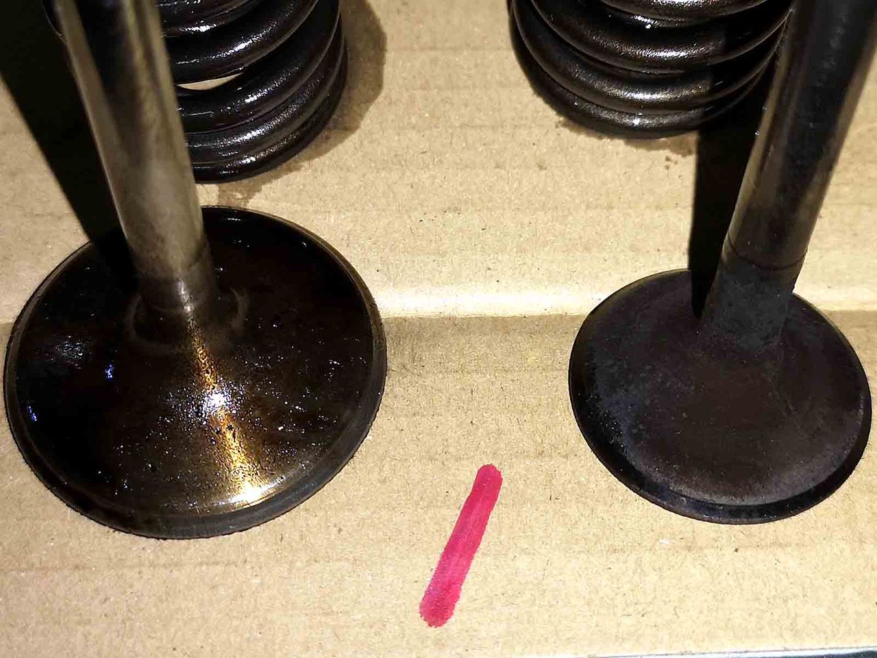 ラッピングヲワタら洗浄して組付けんだけど、交換したusedなL28バルブ、フェース研磨は