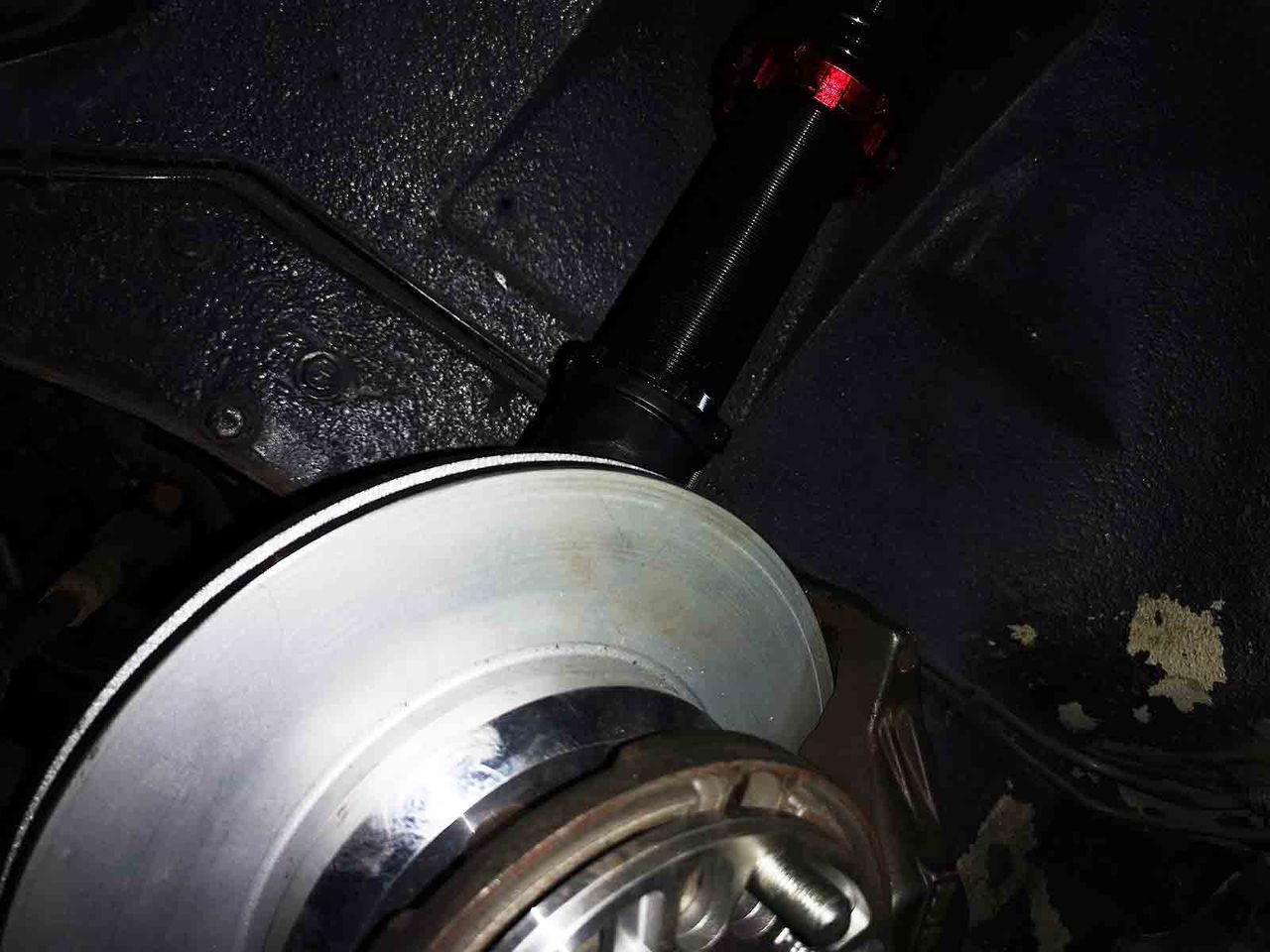 車高は前に合わせて下げたくないですから、調整イパーイまで伸ばしたところにセット、